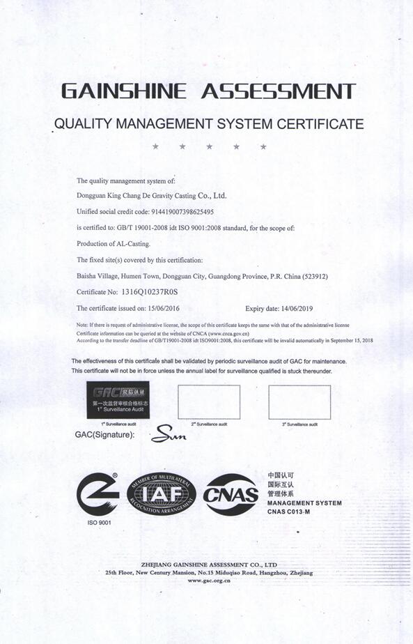 東莞金長德重力鑄造有限公司始建于1990年,是一家專業從事鋁合金重力鑄造、低壓鑄造、砂型鑄造的企業。位于廣東省東莞市虎門鎮白沙一村,已經有三十多年的歷史,專業從事于鋁合金鑄件的生產和加工。我司除了自己設計制作各種鑄造類模具外,鑄造和機械加工為一體是我公司的另外一個生產特色。我們可以根據客戶的要求,來樣,來圖進行模具的設計和產品的生產,做出各種毛胚件和成品件。還有自動射芯機,拋丸機,噴砂機,熱處理機器多臺,CNC數控加工中心,銑床等設備。 我司的產品領域包括了新能源電機、機器人零件、汽摩配件,火車零件,機械零件,馬達風機,空壓機系列,印刷機械零件,木工和醫(yī)療器械零件等類型,產品出口到意大利,法國,美國,英國,以色列,日本,臺灣等國家和地區,深受國內外客戶的認可和好評。
